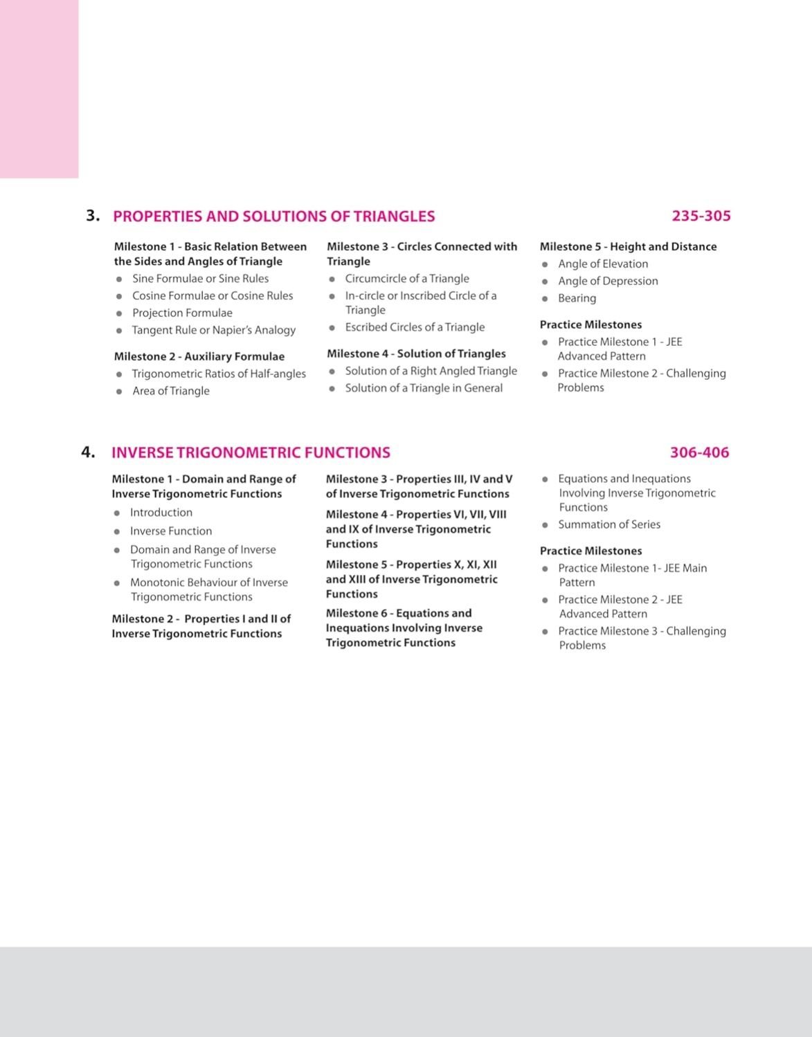 Trigonometric Ratios and Identities, Trigonometric Equations and Inequations, Properties and Solutions of Triangles, Inverse Trigonometric Functions