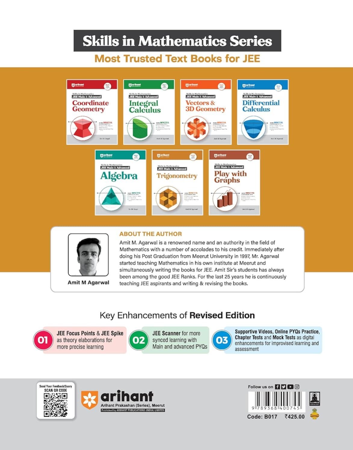 Skills in Mathematics series is the most trusted text books for JEE. Dealing with the mathematical subjects which include coordinate geometry, integral calculus, vectors & 3D Geometry, Differential Calculus, Algebra, Trigonometry, and Play with Graphs, each book is now more impactful and enhanced with theory & practice milestones, JEE Focus Points, and JEE Scanners for theory- PYQs syncing. Thoroughly revised as per the changed pattern of JEE Main & Advanced, this book for “Trigonometry” will help students feel at ease while going through the problems, which will in turn clear their concepts too.