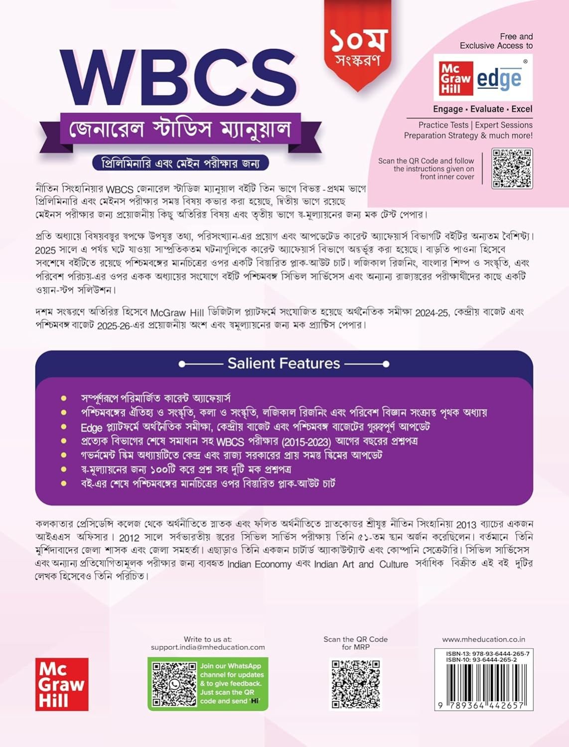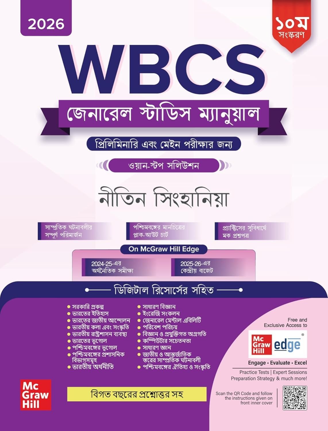 WBCS General Studies Manual (Bengali), 10e 2025-26 জেনারেল স্টাডিস ম্যানুয়াল by Nitin Singhania(IAS) | Solved Previous Years’ Questions(2015-2023) | West Bengal Civil Services WBPSC | Pluck-Out Chart Paperback